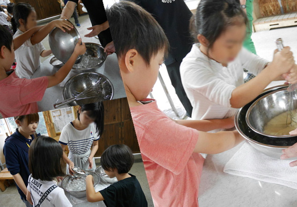 「頑張って!」と励まし合いながら、一生懸命混ぜていきます!