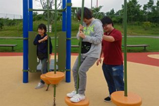 スタッフの声掛けに利用者様もブランコに挑戦。遊具で遊ぶ利用者様は童心に返ったかのような笑顔で過ごされており、屋外での活動を満喫されいるようでした。